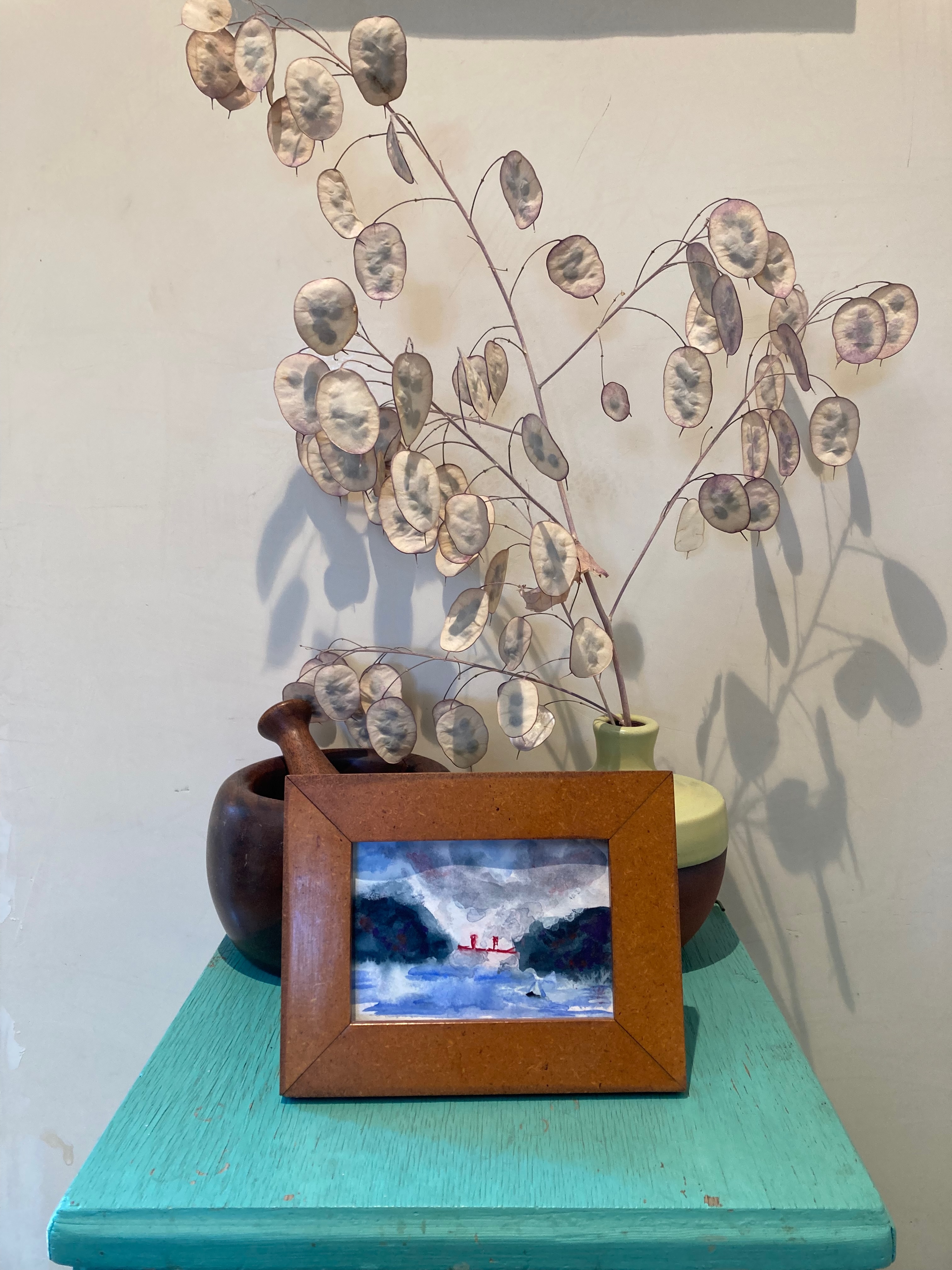 In the last few years, Marsha started painting and that’s become her main focus now. I’m biased, but I really like her work. Last year at Christmas she sent me a small painting of the Golden Gate Bridge on a cloudy day, and it’s been up in my kitchen ever since – I always smile when I see it.