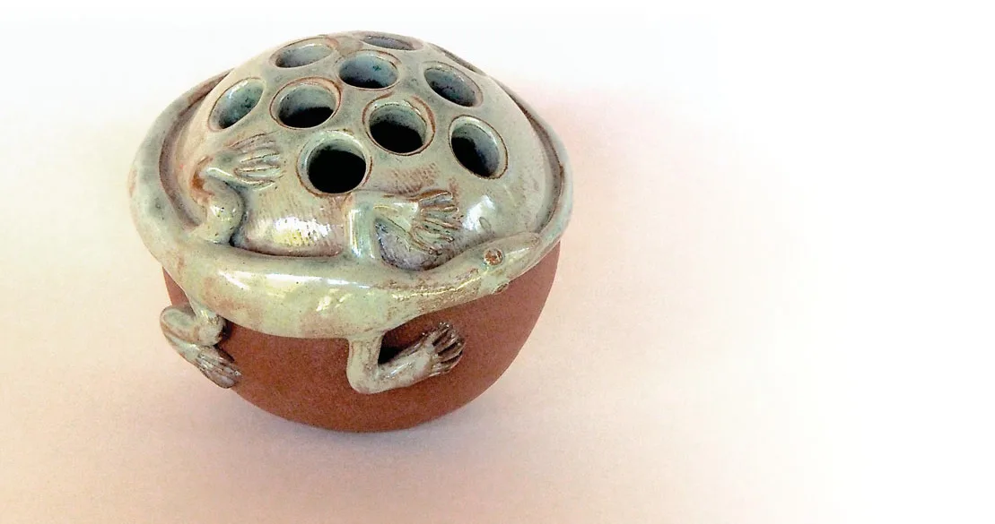 I don't remember a time while growing up when there wasn't clay, glaze, and kilns in my house. My mother had studied art when I was a baby, and she began producing a series of decorative and useful ceramic items in the '60s while we lived in Oakland, and later in the Nevada County foothills of California. She had a distributor in San Francisco who would order these pieces by the gross (144), and several friends of hers served as employees when the orders came in and the workload increased. Even my dad would take a bag of clay on his work voyages as a Merchant Marine and make beads or such to bring home later to finish off. Part of the process of working with this material involves firing the once pliable clay in the kiln, after making sure the moisture has dissipated. For the type of clay my mom used, the pieces would go through an initial bisque firing in the kiln and then glazed – where a substance is fused onto the surface of the ceramics in the next kiln firing.