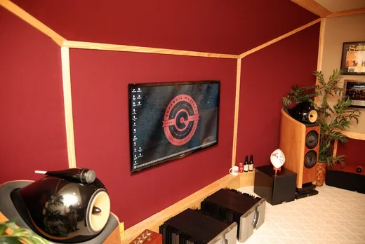 I designed the room myself — I know just enough about acoustics to get myself in trouble. I did some mode analysis of the room and discovered that the dimensions were actually really good. After working out here for a couple of years I noticed the bottom end just wasn't quite right. I found myself having to figure out ways to make sure I had it exactly right. So I talked to Thomas Jouanjean at Northward Acoustics in Belgium. He came in and did a few detailed changes: the front wall, removed some bass trapping, and then rebuilt the entire rear wall using his own custom absorption material. The difference was just absolutely astonishing. Now I'm at the point where I can hear something and react to it immediately. There's no guessing whatsoever, which is really important to me.