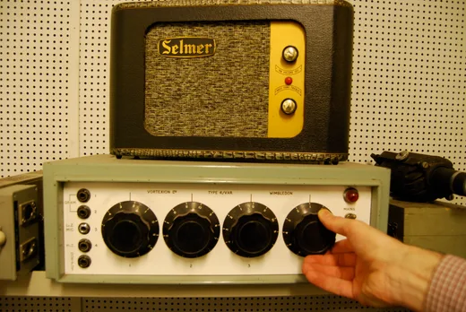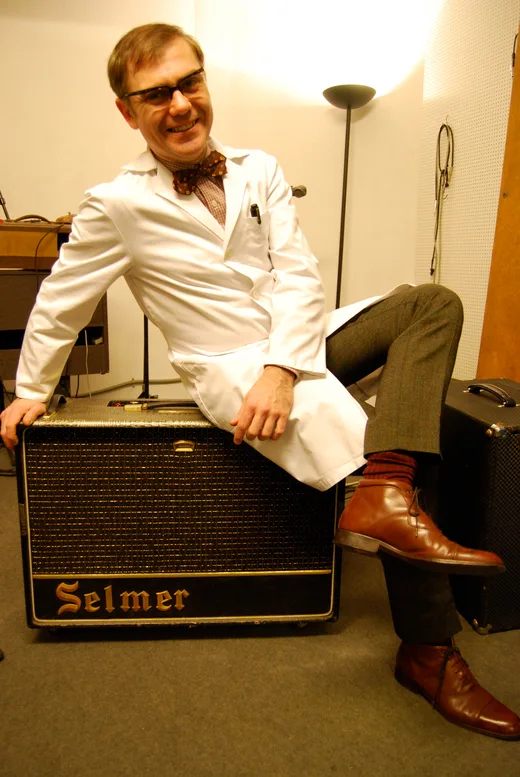I've got a few amps! A few Selmers, like the Little Giant, Thunderbird, Vanguard, the Treble N' Bass MKII, and my favorite — Zodiac Twin 30 with crocodile skin finish. I also have three Vox AC30s; the normal Treble from 1961. They are all vintage, but there are some differences. I was very lucky that I found a few cool vintage amps in a basement in Madrid in 1993. It was a shop on Calle Princesa called Jebrimont. Most of my amps are from there. Jebrimont, in the '60s and '70s, was the Vox and Selmer dealer in Spain. They stopped their instrument business in the late '70s or early '80s to move to other businesses, but in their basement they had tons of amazing gear — totally new old stock in the original cardboard boxes. Best of all they sold it for the ridiculous prices in pesetas that they had marked in their old '60s business references. There was a Vox teardrop [guitar] in white, Gretsch guitars, everything! It was like discovering the treasure of Tutankhamun! The guy working there, Señor Flores, was the soundman for Julio Iglesias in the beginning. This company put the gear in for The Beatles when they came to Spain in 1965, and they had it all right there!