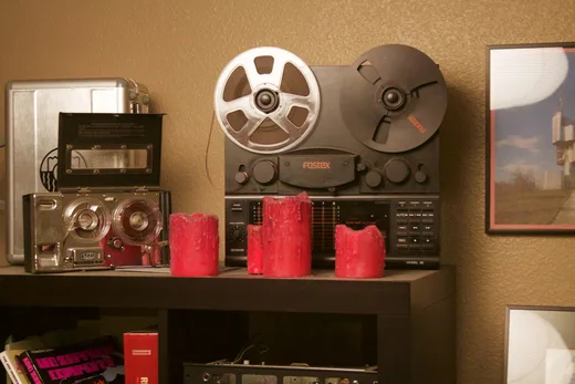 Sometimes I'll record to tape. It's pretty beaten up now, but I've had it for years. I have a spare one, because the prices started going up. I bought a 2-track version as well, because I thought I might mix to it. I'm not ready to make a leap to the next level of tape. I like how I can use tape and still be self-sufficient, to some degree.