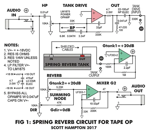 For these reasons, mostly the first, I chose to use an amplifier with a predetermined slope and bandwidth limitation for this article. To properly design the constant current driver, the tank Zin must be known for given PSU [power supply unit] rails. Therefore, experimenting with various tanks would not be as easy. Different tanks, and short versus long, or two versus three springs, sound significantly different, so I felt having that freedom to swap out tanks was a better choice.