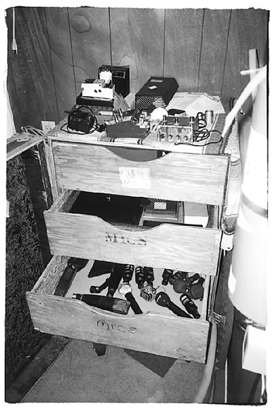 AG: And then [in the control room] there's a patch section with sixteen little inputs to send them to all the mixers, split from the tape outs basically.