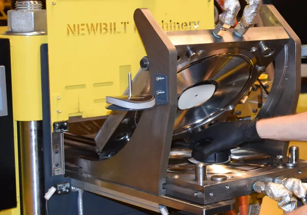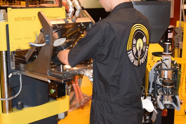 DB: Newbilt were servicing and making replacement parts for presses for a few decades. They're German-based. A few years ago, they noticed that no one was building new machines, and they thought they should start building new machines. They were the first company to start building new record presses in 35 or 40 years. We bought eight of the first ten that were made. The gentleman from Newbilt came over [from Germany] and spent a lot of time helping to set them up and helping us learn how to use them. They've come over here several times to be involved and make sure they're running smoothly. The thing that's nice about having new presses is that a few years ago, if a record plant had ten machines and one of them broke, it would be broken until you could track down the part or figure out how to manufacture a new one.