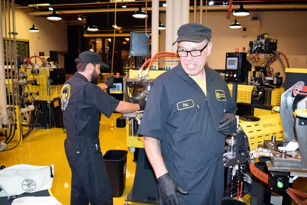 DB: As a company, our theory is [to have] no job titles. If you look at my card, my job title on there is "Romantic Comedian." Jack feels if you give someone a title, that will limit what they'll do. But Randy is the person that oversees the whole plant, and then his right-hand man, Brandon, is like the foreman. There are people QC-ing [quality control], people that are running the presses, and people running the packaging and the shrink wrapper. But, for the most part, those rotate. There are some skills certain people feel more comfortable with, or are better at. But everyone can hop from job to job.