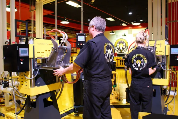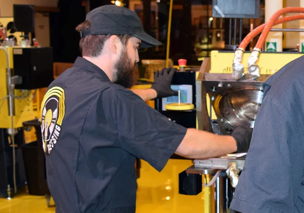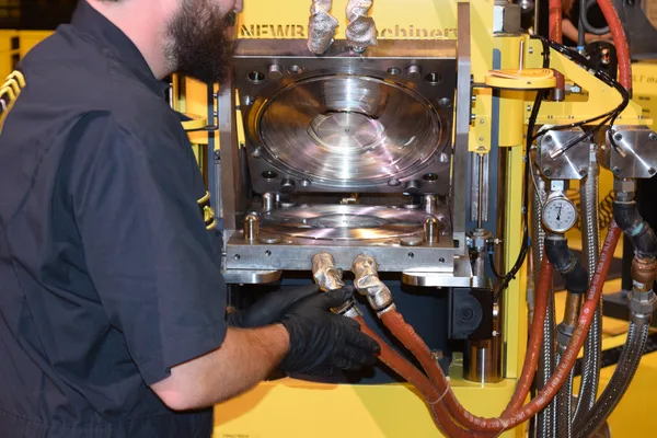 DB: Absolutely. It's nice that we could stock up on some of the parts. And for others, if we need them, it's a matter of days to get them. In the past a machine could be down for months, or even years, until you tracked down the part for it. There's another company in Canada that's started making presses since Newbilt. Newbilt's are manual and the Canadian company's [machines] are automatic. But the machines themselves are basically the same idea as the ones from 40 years ago, just streamlined. The main difference between the old ones and our new ones is that the hydraulics, the chilled water, and the steam were all attached to the machines before. Now we're on a closed-loop system, so we have a chiller room, a hydraulics room, and a steam room. When you're in the actual plant, there's hardly any plant noise. There's no smell, and the temperature is very comfortable – it's very non-plant-like in there. And the machines look a lot smaller because all that isn't attached to them.