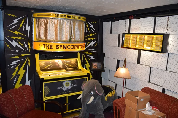 DB: "That was a four-part series on PBS that Jack co-produced with T Bone Burnett [Tape Op #67], Robert Redford, and a couple other fellows. Columbia Records, who put it out, did an actual soundtrack that was a compilation of the sessions that Jack White produced (including the Grammy Award-winning Alabama Shakes track). Third Man did a full companion soundtrack to it. There's also a soundtrack that Sony [Records] put out in partnership with us that's available all over as well. Our presses were bogged down with these for a couple weeks. The last episode was all modern-day musicians recording in the same style as these early sessions were recorded. The lathe is actually powered by a weight, and when the weight hits the ground it stops spinning and cutting. You have one single ribbon mic in a room. That's what the last episode is. There's also a record of that, but we didn't press that here. We pressed it down in Nashville. We work with United Record Pressing down in Nashville."