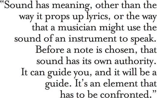 Sound has meaning, other than the way it props up lyrics, or the way that a musician might use the sound of an instrument to speak. Before a note is chosen, that sound has its own authority. It can guide you, and it will be a guide. It's an element that has to be confronted. A lot of people are unaware. They haven't been invited to think about the tonality of an instrument or a voice as having its own musical authority before stringing melodic thoughts together. I'm always listening for the way that sound itself is being conjured into the room, and what it suggests about what we might want to do.
