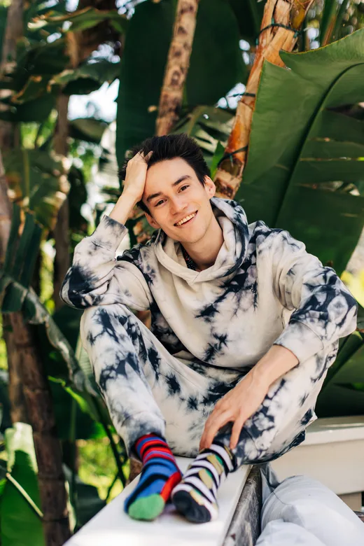 That's a cool question. I've never been asked that one before. I don't think too hard about my color palette, but I do know what I like. There's something great about liking stuff. It takes no effort; it just takes being aware of it. But a lot of the colors I love most are actually in this room. The floor is wooden, the drums are of earthy colors. There are lots of browns and greens and blues. My Wurlitzer is blue. There are reds of instruments as well – there's a bass that's red, and my speakers. And I find myself being drawn to all of that. In fact, here, I keep in front of my desk this little blip thing. Picks up a 10×10 grid of squishy, colored balls. I do tend to be drawn to more earthy colors. I don't know why, but I do find a lot of solace and inspiration within the natural world; and taking a good walk is amongst one of the best things that I could possibly be doing with my time. I love the idea of reflecting the natural world. I think about this a lot, in terms of creating structures of time and harmony and music, because a lot of things in nature are beautifully constructed in a very logical and clear way. It's the same, I suppose, as what I aim to do musically, which is that you can experience the world of nature on the surface and think, "Well, all around me are simple things –a tree, a flower, a cloud in the sky." But the truth is, there's so much – almost an infinite depth – to how those things are constructed, and the way in which they came to be. Experiencing them on these multiple levels – I love that process so much. And I love it through building things – as well as building and understanding systems of things. I like perspective-hopping between the largest and smallest of degrees away from something, in order to experience or understand it. That's not answering the question about colors directly, but when we look at the natural world in a visual sense, or in a sonic sense, or even in a system-based sense, there's so much beauty to be perceived there. I find myself either consciously or unconsciously – probably both – reflecting that in some way.