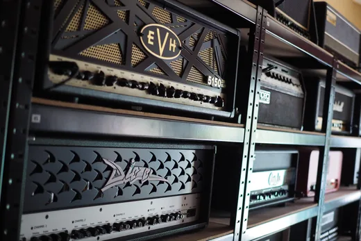 Yeah, pretty much. They all live on a patchbay, and then upstairs is an ISO box with some cabs in it. I'm probably not mic'd up right now since I just got home from tour, but usually if we're tracking guitars, it's really fun to shoot out amps. I can re-amp right here. We're always trying to use new amp/cab combos and playing to get a unique tone.