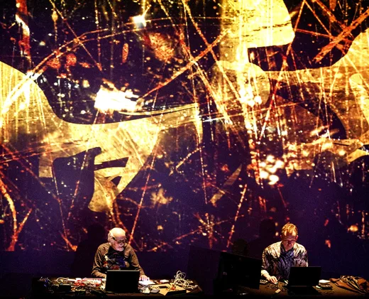 No, the only reason I do Silver Apples... is that it was the beginning. The way I play it now is because there's no other way to do it, it wouldn't be possible. I sample the entire piece. Side one and side two; each is a sample. Then I take the opening, and I make a loop from the opening. It's in Ableton [Live], so it's looping and that's the background. I can bring that into the foreground in various ways; I can modulate it, and I can play parts against it that I have prepared. There's a very good Buchla 200 oscillator emulation that I can use. It's a plug-in, so I can have five or six of them in my patch, which keeps me closer to the original Buchla. The side one part of the set is only four or five minutes of raw material. I use pretty much the whole range of side two so that it can build up. I have these sounds that I fly around the room, and I can add to them. I do another version of the bass now, with the subwoofer, because on the vinyl it doesn't get far enough down to have a good sub bass. I filtered out the bass on the samples, put a new version that's heavy, and now I can do it well. I can bring them in when I want, or I can loop it all. That's the process, and the whole thing runs 10 minutes. When I come down in the end, sometimes I take it into the next piece ["As I Live and Breathe," with visuals by Lillevan.] It's just a document of the beginning, and then I have to figure out how to get Lillevan on the stage. I try to do it without a pause in between: The light comes on, I breathe, and we start. I'm not interested in reinventing Silver Apples... It's a lot of work and I'm not really interested in that. That work was made for a record which is the real form for it, and that's where it belongs.