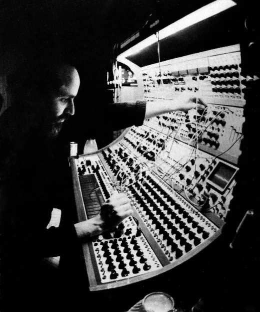 Since I had nothing then that could make a scale with, I ended up doing it all by ear. I didn't even think of the second side until I finished the first side! The second side, I said, "Well, where do I go? This would be a good place for a sequencer. I'll get a groove going." I got it set up and I played it. It took me, on average, from two weeks to a month and a half for each section, and 13 months [total] to make Silver Apples... In each of these little recording sessions I would have a patch that I worked on, depending on what it was, from a week to two weeks to a month. When we set up in the studio, it would be going continually, because if I turned it off, I didn't know what would happen. I'd get a little groove pattern going that was a little different to start with, and I didn't have an absolute meter until it was running for about two or three days. It blew my mind. I couldn't get my body off of it. It was not just a beat and not just a groove. I grooved on it. It was just the right tempo, so I played with it, and it was all there. I had another sequencer that would bring in another beat, a low note, which eventually went to a subwoofer. There were probably six or seven positions on the sequencer control knob that one could go to, with the time being that of the length of each beat. Then I added another sequencer with 11 positions and another with one of 15 positions, always an odd number with one note as a starting point. Every time that note would come in, it would be in sync with one of the notes on the other sequencer. The whole set of sequences were growing, so I didn't know when each new one was going to come in. I could then go back and forth until I got one cycle that came often enough that I hadn't forgotten it, and if I then pressed the button, I could turn 11 into 7 or into 3. I could move the point back and forth to go more in one direction or another, and I was recording all this as I went. The other stuff that's the "high jazz" was another take. This was all going on and I could then overdub that. What I discovered at that point was that for me, even if this wasn't really dance music, it still caused your body to groove. It draws you in. I'd never been drawn into a beat or a meter before when I was a clarinetist playing symphonic music. I'd played in a dance band, so I did have that in high school, but I hated it! So that's how Silver Apples… was made, and that changed everything for me about rhythm and time.