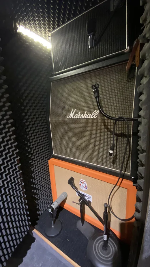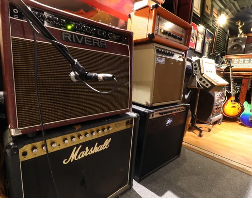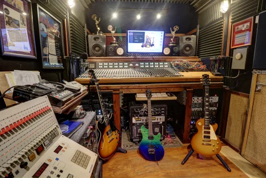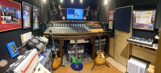 In the beginning, I didn't have a studio, so I partnered with my engineer mentor, Geoff Gray, who owns Far & Away Studios in Boulder, Colorado. He had a studio, and I did it with him for a while. I knew that I needed to build a studio, but in those days even to buy a Tascam reel-to-reel was expensive. This was before the whole [Alesis] ADAT and [Tascam] DA-88 [digital tape multitrack] time. I started with a cassette 4-track or 8-track, a horrible thing. I built it in the small studio that I had in Hollywood, in Jim Morrison's old apartment. Then I went to a 1/2-inch, 16-track reel-to-reel. They were horrible, because they had their own built-in Dolby [noise reduction]. Then I went to a DA-88. The DA-88 was convenient, and it was clean. I began to see that everybody was dumping their equipment in the late '90s for digital. I was able to get a lot of good gear, and through the years I built it up. I built a couple of studios where I was living. Finally, I took everything and put it into the studio trailer. In the live room, I have the 2-inch machine and all the amps. I have an amp booth with an amp switcher – I can switch from any head to any cabinet whenever I need it. Ampeg made a switcher, but not a lot of them. They made a little one and a rack one [System Selector AMP-SB] that can take up to eight heads and eight speaker cabinets, plug them in, and I can mix and match anything I need. When you do a lot of TV work, you've got to be able to move quickly. It's all mic'd and ready to go, so all I have to do is patch it in and I'm done. That makes it a lot easier for TV work. Between doing albums and TV work, they're completely different. TV and film work always has a thousand different changes. Doing it in the early days on tape was a nightmare. If they wanted changes, I'd have to go back to scratch. That's where Pro Tools comes in, and I just stay in that domain for this work. I can still use the desk, the EQs, and all the outboard gear, because it's all bussing through the Trident analog mixer. I can always recall everything.