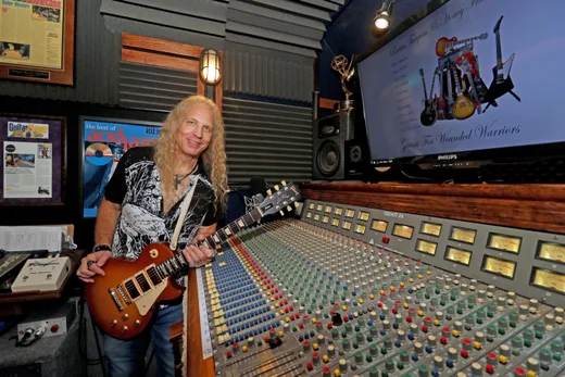 Yeah, I do. I bought this thing from Southern California. It was a 26-foot trailer that was specially made for audio recording. They had extended the ceiling to 9 or 10 feet. It has two rooms with a sliding door between the two. One's a little live room and the other's the control room. I use digital, because you have to do so today. But everything does go through the desk. I have a modified Trident 24 [console] from 1986 that I completely brought back to life years ago. It fits absolutely perfect. It had two producer desks, so I had to get rid of one in order to fit it! It's got a patchbay that's built in from the factory. I have an Otari MTR-90 2-inch [tape deck] that I recorded all the drums, bass, and guitars on. And I mixed everything down to an Ampex AG-440, an old dinosaur 1/4-inch, but it sounds so good. With this project I could take the time to do that. For mastering, we mastered it right off the tapes.