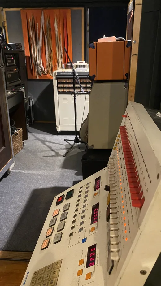 I've had it for six or seven years. Everything's accessible; it's right there, and I can work quickly. I never take it anywhere; I just use it where I am. What's good about that is when I move or go somewhere else, it always remains the same. I've done that so many times where I build a studio and the whole thing changes. "This room sounds nothing like the last one I was in." The previous owner even put a wood floor in it. I've got an oak floor in the control room. They went all out on fixing this properly.