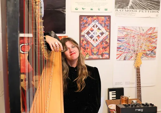 It is. I'm so attached to it now. I feel like it's such a basic thing, but it's like another instrument and I know it really well. When I started playing in Fursaxa with Tara Burke and Helena Espvall, they both had Line 6 loopers and I thought Helena's cello sounded so cool through it. "What would the harp sound like going through this machine?" I started messing around and getting to know it. I spent a lot of time experimenting and failing with placing piezo mic pickups on the outside of the harp. I finally found this Seattle company, Dusty Strings, that makes a pickup called the Dusty Harp Pickup [P30]. It's the one that I put in both of my harps, and I even put one in one of my mom's harps on the east coast.
