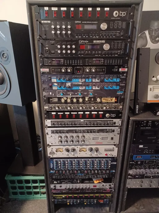 Oh, no. All of my outboard gear is from back in the days where I'd go to Sam Ash or Manny's and there was the clearance rack. "Oh, BOSS made a flanger and it's a rackmount? Furman made these compressors, and nobody wants 'em?" All of these bad things. I go over to Dan the Automator's place, and everything's quality. My rack is just garbage, but it has its own unique character and sound, and I like it. I know it now.