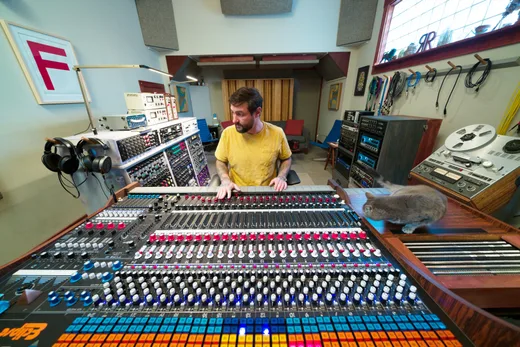 I'm a fool with finances. The reason it's worked out isn't that I want to be rich or famous. By age 14, I knew I wanted to go to audio engineering school. I interned at Great Tracks Recording [Cleveland, Ohio] during my senior year of high school, then went through the Indiana University recording program, and then Electrical Audio right after graduating. I opened Russian Recording in 2003. Bloomington had a vibrant local scene, with great bands. I started telling them all, "Hey, I have this studio." It was DIY from the beginning. I rented an A-frame ski lodge in the middle of the woods. This was before smart phones, and bands loved to go out there, because they'd bring food and camp out at the studio. No internet, no distractions, just making records. I charged $250 a day, maybe 16-hour days, but I didn't care, I just wanted people to record with me. I loved that by the end of a five-day session, we'd all be best friends with a half a dozen inside jokes. Then I don't see them again until they come back a year later to make the next record. That's been my life. To fund this, I worked full-time jobs while also learning CAD [computer assisted design], researching how to build walls, and drawing up studio plans. By 2008 I was ready to build my own studio. I walked into the bank with a stack of records I'd produced and said, "I want to build a studio in downtown Bloomington. It's going to bring in people and put Bloomington on the map for music." This was 2008, the worst time to be asking for a bank loan. The loan officer said, "We should not give you this," but somehow, she believed in me. Then it was months of me and my buddies drywalling, wiring patch bays, and installing HVAC. Of course, the electrical cost way more than I'd expected. I was unemployed and in enormous debt. My very first session was recording the electrician for free for three weeks, in a studio that was still barely working.