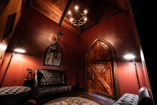 JR: It used to live down at Orbit, leaning up against the live room. When we decided to build this place, I said to Karyn, "Well, we already have the front door." That was the inspiration to make it a little bit more gothic and have this darker feel. Most people, when they build studios, they worry about putting the door on last!