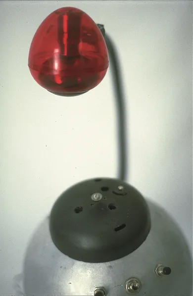 I'm really happy with the new version of my robotic drum kit. I haven't had the chance to unleash the possibilities of what I can do with it yet 'cause I haven't had a practice space. There are interesting polyrhythms I can do with it that an actual live drummer couldn't or wouldn't do. So I'm really happy with that. I have a new light-modulated sampler too, the Dr. Sample with some other samplers built into it as well. There's a bunch of lo-fi sample rate, 4-bit samplers in it as well that have analog clocks. So, with light, I modulate the voltage of the clock and modulate the [sample playback] rate. You can get some really interesting sounds with that, you can manipulate it with your hands. It's like a turntable almost, but even more malleable because you can move it really fast. And the way it's set up is very ergonomic. I build all my light modulators in spheres and your hand fits perfectly over it and the light drapes across it evenly, so it tends to be really fun to play and a lot of interesting sounds come about. And then I have a bunch of little toys, more novelty instruments. One instrument I built out of a Tommy organ keyboard, I gave it a talkbox-like feature. I put a telephone speaker on the output so you can stick it in your mouth and slobber all over it. You can create a filter with your mouth. It's a fun instrument because it's a toy, and I tapped the pitch resistor to give it a variable pitch control. The neat thing about it is when you vary the pitch control, the keys go all out of wack, and the relationship changes, so that instead of half steps you get quarter steps, or whole- tone scales. Another thing I just did is a tiny synthesizer, which is a Frankenstein creation. It has an interesting sound because the oscillator is from a toy keyboard and what I did is I circuit-bent, meaning I went in and put my thumb on the ground and moved my finger around while I played it until I found warbly sounds, or until the sounds were broken-up.