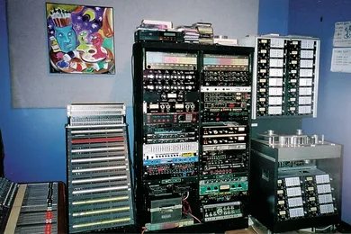 When we did our major re-design/renovation about five years ago, the three of us sat down and tried to figure out how best to use the space. We found we had just enough space for a typical four- or five-piece band to set up — fairly comfortably — in the same room. And we still had space for a decent control room with a big console, multitracks, and a fairly big rack of gear. What we felt we did not have room for were computer monitors, keyboards, that kind of thing. So we figured, well, we've got a good rep for recording rock-oriented stuff, let's make this a cool, mostly- analog, vintage-type place.