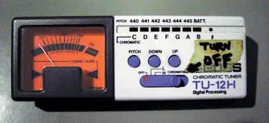 The most common moving-needle types are the Boss Chromatic ones, and they're pretty good, but here's a tip: the input jack is soldered directly to the internal circuit board, and these solder joints always crack eventually, which makes the tuner act "intermittent," with the needle jumping up and down. I have resoldered more of these in the studio than I can count; the plastic case comes apart easily, and you can resolder the jack in seconds. If you have one, check it: it may not be a "bad guitar cable" that's been frustrating you.