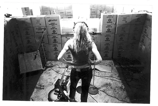 Yeah, but then Tom Daily, one of the photographers today, is doing a solo acoustic thing after Haymarket Riot. So now I have to call all the bands that I think are the most important and influential underground bands in Chicago, and figure out how to get their touring and personal schedules to fit so I can get them all in here. I'm not a big believer in karma, or luck or whatever, but somehow all the bands I wanted could do it. And I somehow scheduled one band a day, sometimes two or three, in eighteen days with only two days off, and now we're just doing it. And it's working. People have come and think it's a great idea and so now I've taken it a step further. I thought, 'Okay, I've got the place, I've got Lance, I've got the bands, I've got a label to put it out, a distributor... I want to bring in a different photographer every day, to document the sessions, the factory and the bands.' I'm doing some video to document it — interviewing the bands, documenting the recordings, interviewing the factory workers and getting an overview of what they do here. So now I've got in front of me, not only a great record, but endless amounts of video and photos. One guy came here the other day and shot thirty rolls of film. The plan is that we're going to take all of the best shots and not only use it for the CD packaging, but also have a gallery showing that would also be the release party for the CD. And the release of the record will be either January 20 or February 10, depending on how we stay on schedule. We're not mixing here, just tracking. Some comping of vocal takes and computer stuff at theendofa session, but that's it.
