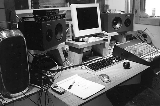 I have a computer in there. I have the 16-track 1", the [Tascam] MS-16 and I have the Pro Tools [Digi] 001 together. I'm trying to make them become friends, that's the battle right now. We just started here with the 16-track, that's a new member of the family. And I'm slowly acquiring things. I'm getting a Soundcraft board from Rafter Roberts in San Diego, a 16-channel. I'll use that to track as much as I can onto the reel- to-reel. Then the thing I'm extremely nervous about is transferring that. The 001 converters are pretty weak. I've had people recommend a rack of eight converters you can get, but the thing is I still only have eight good converters and eight not so good ones.
