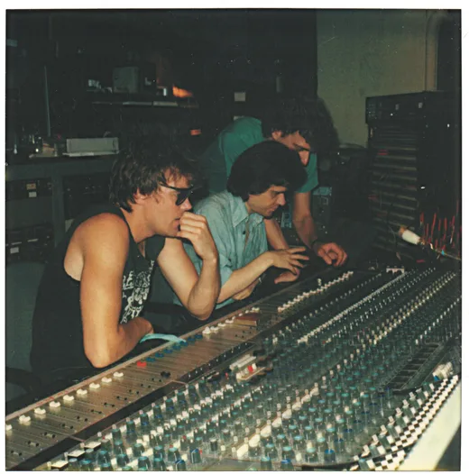 We used many studios for this record because of the low budget. We got good deals at these fine studios but for a limited time so we had to finish up and move. So we got in Tony Bongiovi's single engine private plane and we would fly from Washington to Quebec, from studio to studio — it was kind of funny. We flew from New Jersey to Washington where we mixed half the album on a nice Neve console. Then we flew up to Montreal and mixed the other half on a large Trident. The first album was done at Radio City Music Hall in New York at a place called Plaza Sound. We had a 3M 16-track and an API console. The studio was a big room. It was originally an NBC radio studio from the golden age. It was a beautiful art deco room with a Wurlitzer pipe organ built in. The second album was recorded at a place called Sundragon, which had a custom console made by Roger Mayer. The EQ section was like miniature Pultecs that had separate boost and attenuation controls. They had one of the first Studer 16-tracks in the United States. It was a very nice and cozy studio. The third album, Rocket to Russia, was recorded at Media Sound where we had a Neve console. It was a huge room, a converted church. Big, high ceilings so we were able to get a good drum sound especially on the next album Road to Ruin, which was also recorded there. Rocket to Russia was the first album to be mixed at the famous Power Station recording studio. The studio was designed and built by Tony Bongiovi and Ed Stasium. The design of this studio was one of the most influential of the era. The studio was still under construction and we did not have an EMT plate. So we had to set up a live echo chamber using a stairway with a JBL speaker and a U87 set up. It sounded pretty good. We had a Neve console and 24 Pultec EQs in a huge wooden rack, one for each channel. Tony had them custom made by the retired manufacturer of Pultec. Tony hated running out of Pultecs. The recorders were a 3M 24-track and a Studer 2-track. For monitoring we used Altec 604 Es, which I loved and still miss. For near fields we used JBL 100s, which Ed loved but I hated.