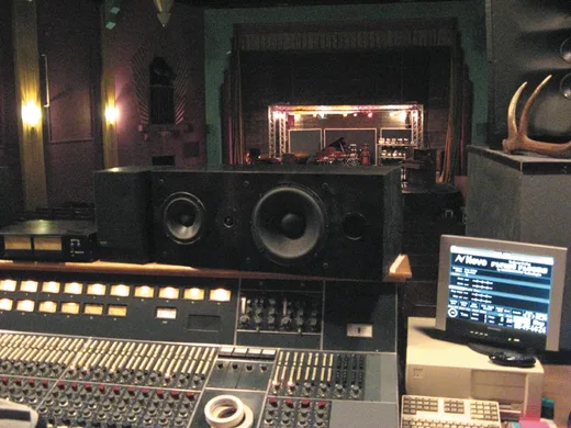 There are four studio rooms and a brand new rehearsal room. The rehearsal room is in a big, old building that we recently acquired which used to be a church. It will eventually be a second, big tracking room, much like the theater. Right now there are four working studios. There's the Neve in Studio A, which is the original console we had installed in the theater, and that's an 8038. Then we have a brand new console installed up here in Studio B in the balcony — the SSL 9080 J — it's eighty channels. Then we have a Trident 80 series in the Studio D "Toy Box." And over in Studio C we have a TAC Matchless with a Neve BCM- 10 sidecar. Everything goes through the Neve.