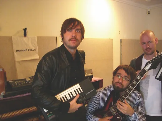 Björn Yttling is standing in my studio manhandling a Moog. He's not getting what he wants out of my old Realistic MG-1 that I've had since high school, but that's no surprise as it's been in the corner for years sucking up dust. He's got a determined look on his face, searching for a way through the noise to get at this beautiful melody that's he's working on. In about two minutes the old bird is singing sweetly — it's a minor miracle. Peter Björn and John — Peter Morén, Björn Yttling and John Eriksson — are at my place for a few days, rehearsing songs and demo-ing for a new record. They're winding up two years of touring for the ridiculously successful Writer's Block. You know, the record with that infectious whistle-laden song, "Young Folks"? C'mon, even your mom has heard it in the supermarket. We've got keyboards and drum machines on every surface and drums and amps strewn about. Even the piano is mic'ed, going into the PA with a ridiculous amount of reverb. They're completing songs and solidifying arrangements. Over the course of three days I hear the same set of songs played fast,slow,beats changed, different instrumentation and different feels. Björn has the band looking at the songs from every angle. It's a rehearsal-heavy pre-production ethos. Björn tells me that he's psyched to be in L.A. because the time difference keeps his cell phone quiet so he can work.
