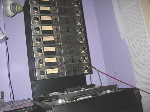 If we need to we'll throw a Pultec [equaliser] on it! We rotate them from home to the mastering studio. We have to decide who can use them day-to-day. I think if you've got a lot of EQ available, you can start to rely on it — people start EQing before they've even heard [the music] back because they "know" that it's going to need more top end or whatever. It's not easy recording with this stuff though — we've got to put in a lot of work to get a half-decent sound, never mind a good one! It'll all sound good and then we play it back and something's muffled or something starts cracking up — then we have to change a few capacitors or whatever.