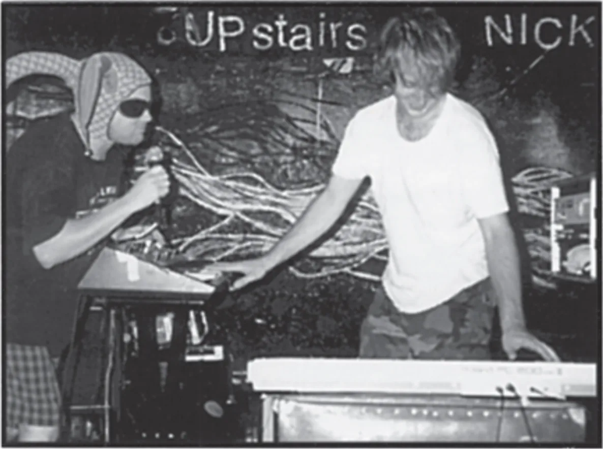 In general, I have about five minutes of experience with 4 tracks.. No, not even that much. But I remember when I was little, in like third grade... listening to like, "Reunited" and "Hot Child in the City". I'd make tapes using the three-band EQ. It sounds hokey, but I remember that shit. I was the kid at school who always carried around the tape recorder... you remember, the kind where the record button is a little red dot in the play button." [That, he finds particularly funny and laughs for a while.] I had one of those. And, you know, fuckers would be following me around the school yard... I'd be playing 'Life in the Fast Lane,' and like, Three Dog Night, and shit. [He really can not stop laughing.]