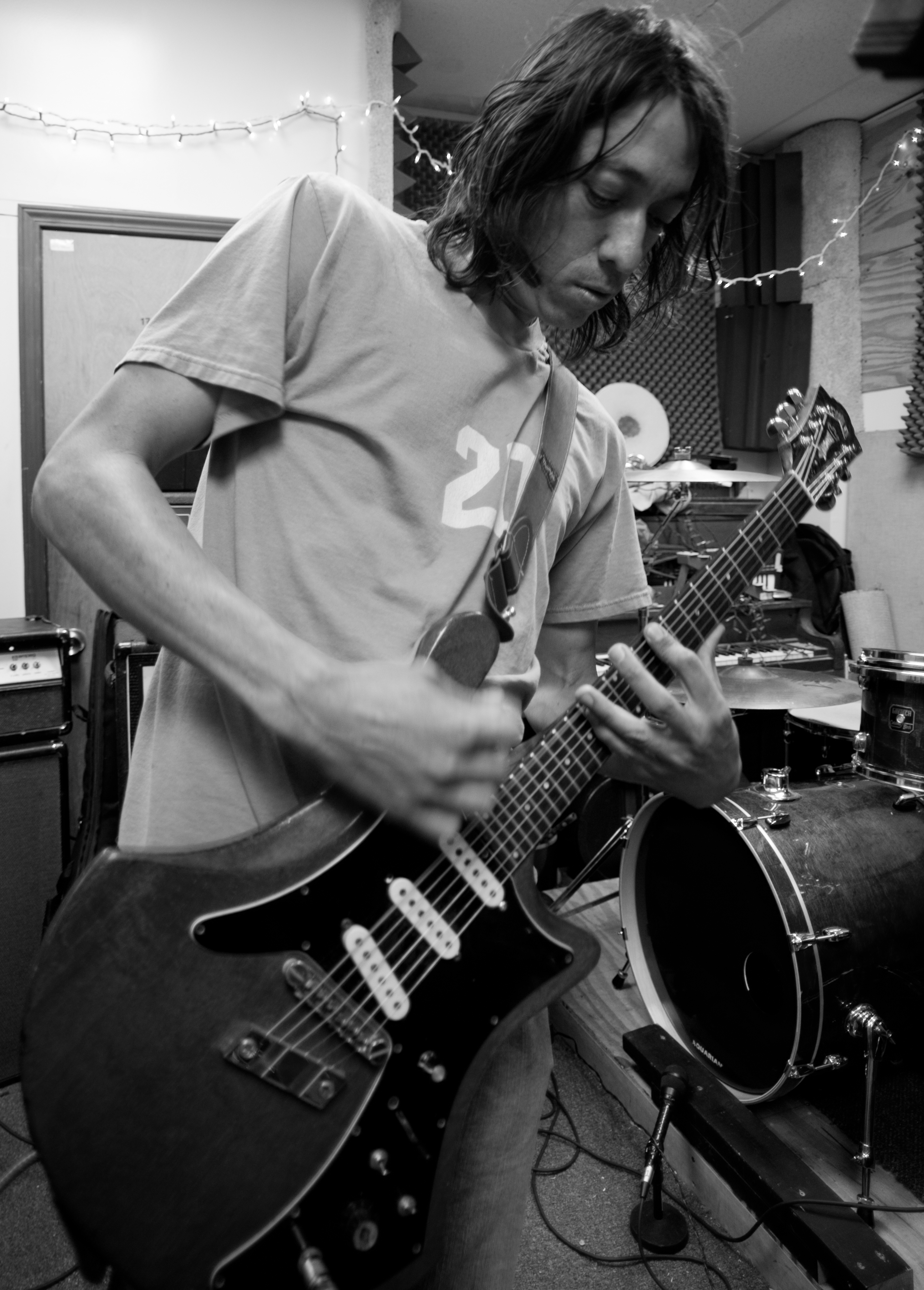 SP: It was with Dave [Brylawski, Polvo's other guitarist]. He had a solo project prior to Polvo around 1986. He had a 4-track. That was the first time I ever put music to tape. Dave, me and my roommate at the time — Jeff — put one mic on the drums, one on the bass and one on the guitars.