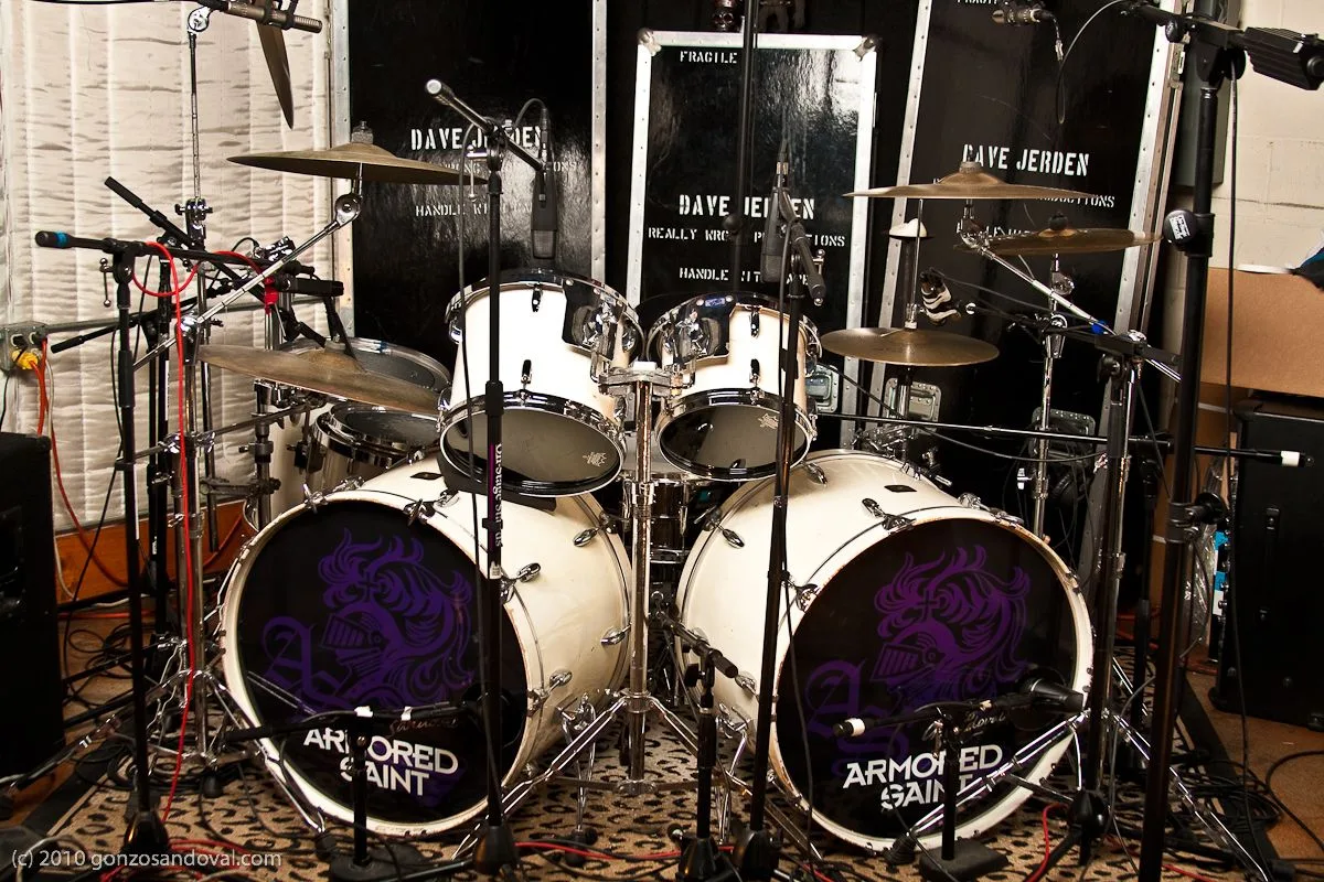 Gonzo Sandoval, Saint's drummer, had reconnected with Bryan Carlstrom — the engineer that worked with his long time studio partner, Dave Jerden, on the band's 1991 release Symbol of Salvation. I asked Carlstrom about how he came to work the band again. "You know that's an interesting question. About two years ago I got back in contact with Gonzo. The studio was at another location at that point. He came over and we hung out. I expressed to him, 'Oh dude, I would love to make another Armored Saint record if that ever happened.' I was even back then trying to think of how could I come up with enough time where I could just ask them, 'Come in and let's just make another record.' Me and Gonzo talked about it. I think Gonzo didn't think that another Armored Saint record would be happening, but me and Gonzo stayed in contact. Apparently at some point Joey and John started writing and Gonzo told me they're going to be doing another record. I didn't know how or where, but I just told Gonzo, 'Listen, I want to make that record. I really want to do it.' And he talked to Joey and Joey called me and said, 'Well do you really want to do it? I don't know if you could [work within the band's budget].' Me and Joey talked it over and decided it could be done and I really wanted to do it. Things worked out."