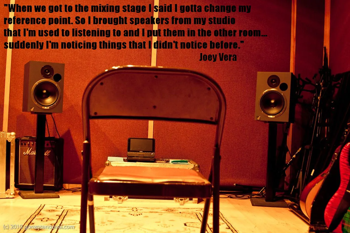 You brought your monitors from your studio The Bridge. You set them up in the isolation booth to listen to the mixes as you were moving along. Tell me more about why you did that.
