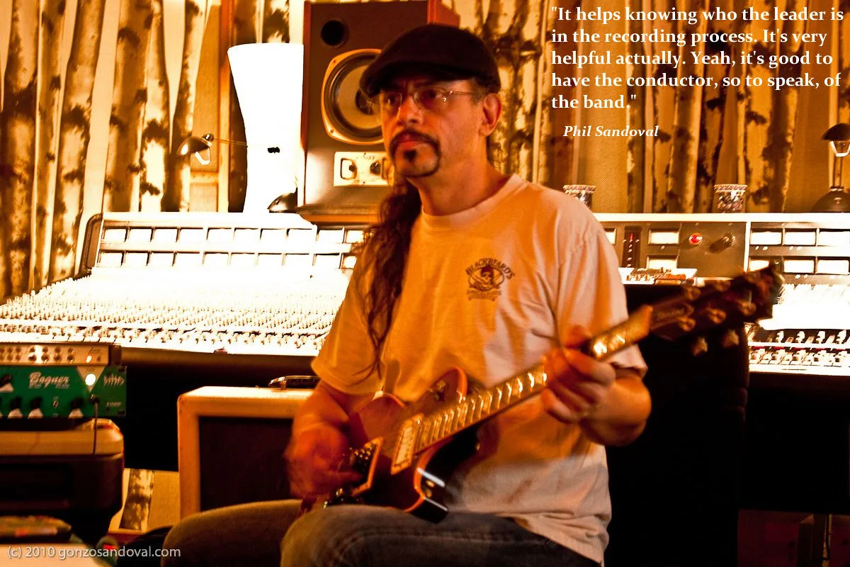 That's probably the odd thing about this is that there really wasn't much of a pre-production because we never rehearsed as a band. Here's pretty much how it went. John and I wrote the music. We made demos over the course of about 13 or 14 months. Then, when it came time to get ready to plan on making this record we had to figure out what the logistics of it was going to be. The person who had, aside from myself, a [big] job was going to be Gonzo [Sandoval — drums] because he was going to have to perform all the songs [in their entirety]. At that point [he] and I were the only ones that technically did any pre-production for this. I gave Jeff [Duncan — guitar] three or four songs to listen to and to learn to play the rhythm guitars for and then the remainder of the songs I was going to play [rhythm guitar]. Then, for guitar solos I gave Phil [Sandoval — guitar] and Jeff pretty much an even split. You know, Phil plays on these five and Jeff plays on these five. So, everyone got versions of the demos. For instance, the two guitar players got versions of the demo that didn't have anything in the guitar section so that they could, at home, work stuff out on their own, and then when we came into [the studio] all they were gonna play was over sections that they had already been practicing at home to. What me and Gonzo did was that I gave him stems of the songs. I took the [demo] sessions and I created a stereo guitar track, a stereo vocal track, a mono bass track and a stereo drum track. Plus, I gave him click tracks, plus the tempos. I also gave him my version of the "road map" which was basically my description to him as to how I perceived the song arrangement[s] and I would break it down by bars — B section 16 bars, chorus eight bars, that kind of a thing. I would make a road map for him based on that arrangement so that when he listened to the song he could read along and figure out what the parts were. Now, when he got it he made his own interpretation of that because he interprets things differently than I do. So, he would break it down to how he hears it.