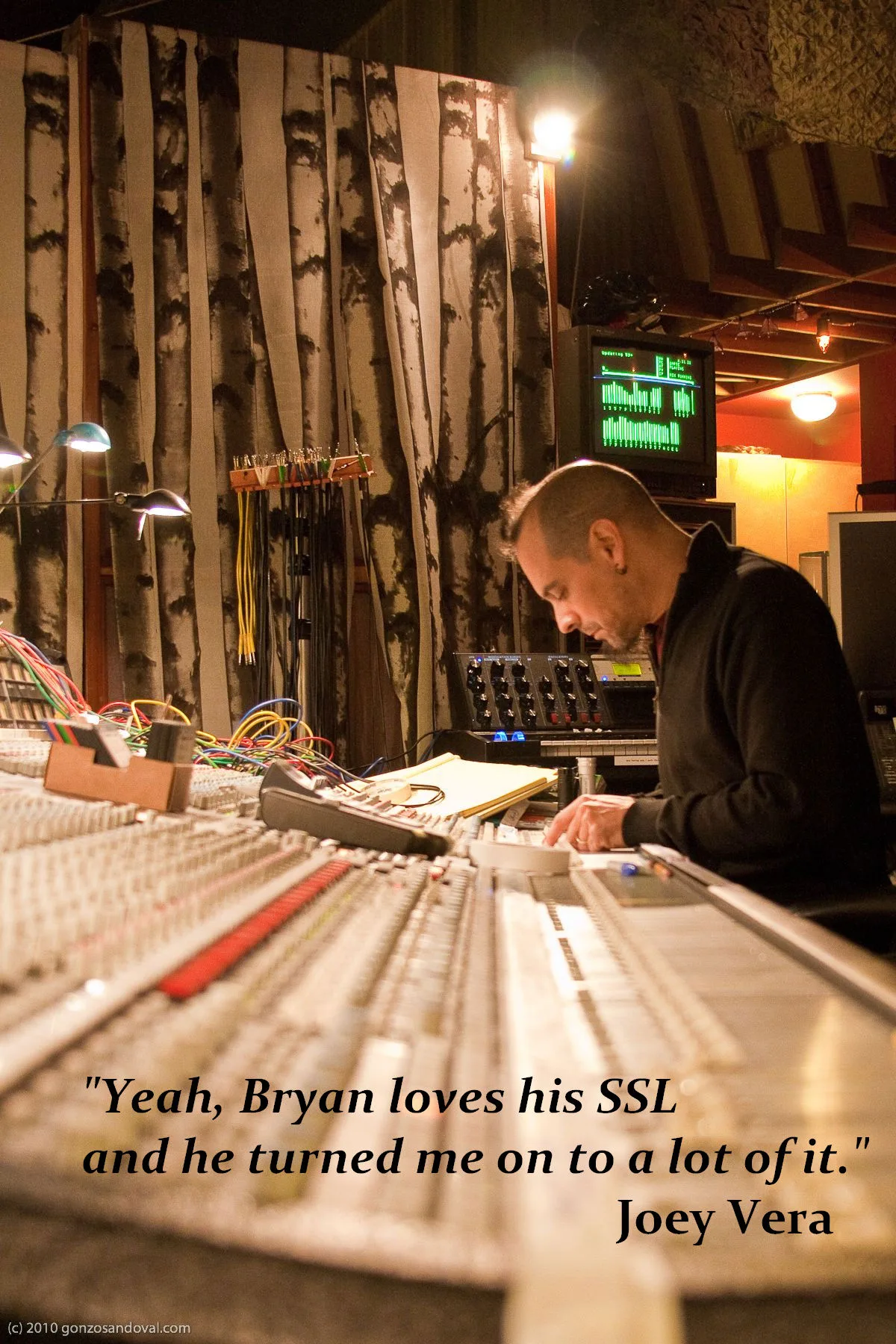 You didn't notice this, but a lot of times while you were mixing at the board Bryan would peek in and see how you were doing. Mostly, he would see you cookin' away so he didn't say anything. Sometimes I would hear him say, "I gotta walk back over there and make sure he doesn't need me." He was always conscious of the fact that you were there and he wanted to make sure that you were comfortable. I saw that. Very diligent.