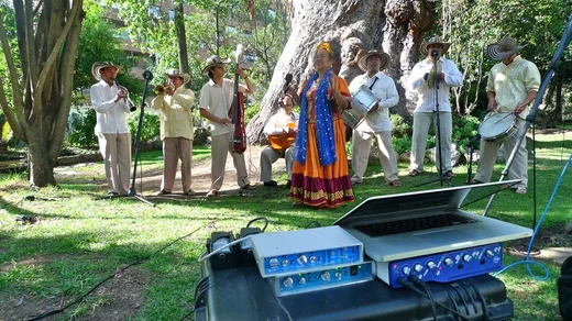 Not really. For the most part it's usually just us. Taj Mahal, Keb' Mo', Los Lobos, Sandra de Sá, Manu Chao, and Carlos Vives — all those musicians let us use our own gear. They're all so happy when they hear it because it's such a great vibe. They're excited try something outside. Taj was in Central Park, Keb' Mo' was on back porches, and Manu Chao was under an archway in Barcelona, Spain. There's great reverb on his guitar, and his voice from natural reflections.