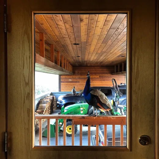 The guest house, a beautiful cedar structure with great lines and perfect angles, sits atop a hill with a view of Mount Rainier. It was an incredibly inspiring place for me to work. Peacocks roam the property, and they would come to my door every once in a while to hear what all the bleeps and bloops were about.